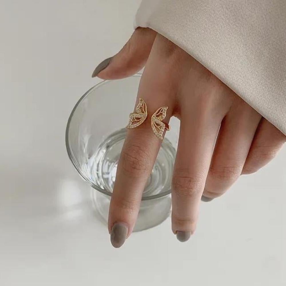خاتم فولاذ لون ذهبي. يضيف الخاتم مظهر أنيق وكلاسيكي، كما يتألق أيضا بمجموعة من الأحجار التي رصعت عليه، أحجار الراين المطعمة التي تضفي لمسة فاخرة على المظهر، أضيفي هذا الخاتم لمجموعة المجوهرات الفاخرة الخاصة بك،